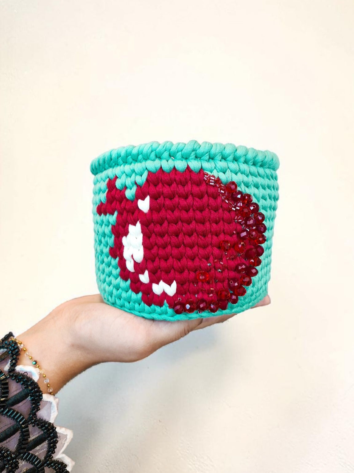 Made with Teal and Red Imported Yarn (Cotton-Polyester Blend)