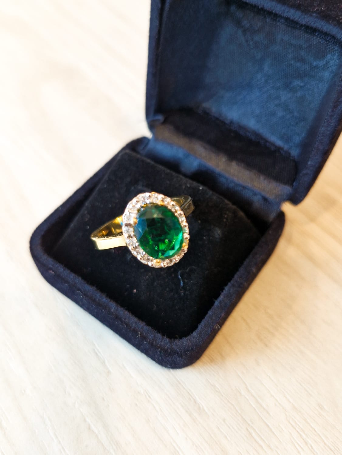Stones: synthetic emerald and white zirconium